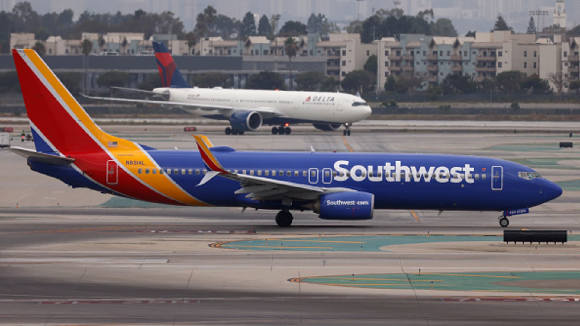 A Southwest Airlines Boeing 737 taxis at Los Angeles International Airport on September 19, 2024 in Los Angeles, California.