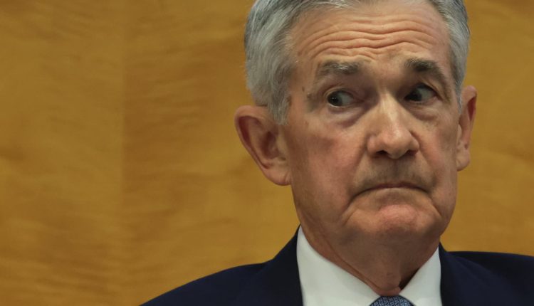 U.S. Federal Reserve Board Chairman Jerome Powell participates in a panel discussion at the 24th Jacques Polak Annual Research Conference on November 8, 2023 in Washington, DC.