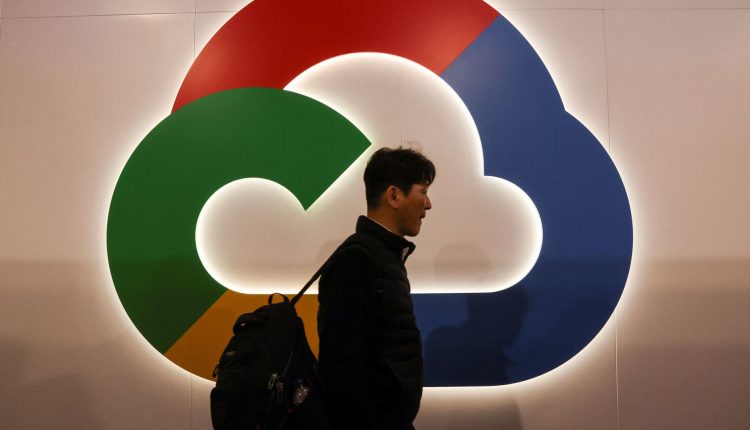 A person walks next to the Google Cloud logo at the Mobile World Congress (MWC) in Barcelona, Spain February 27, 2023.