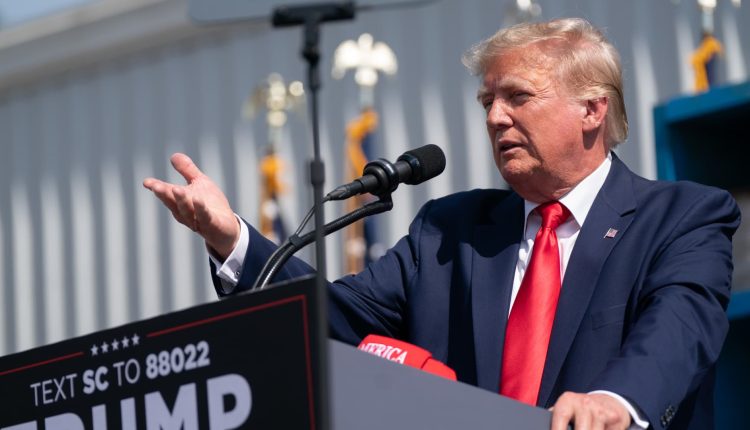 Former U.S. President Donald Trump speaks to a crowd during a campaign rally on September 25, 2023 in Summerville, South Carolina.