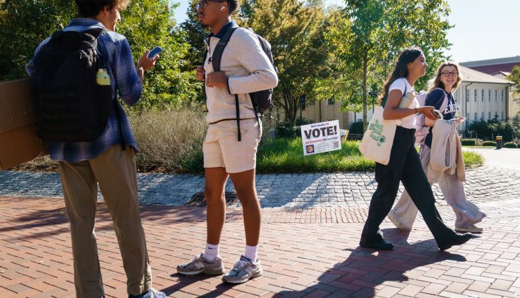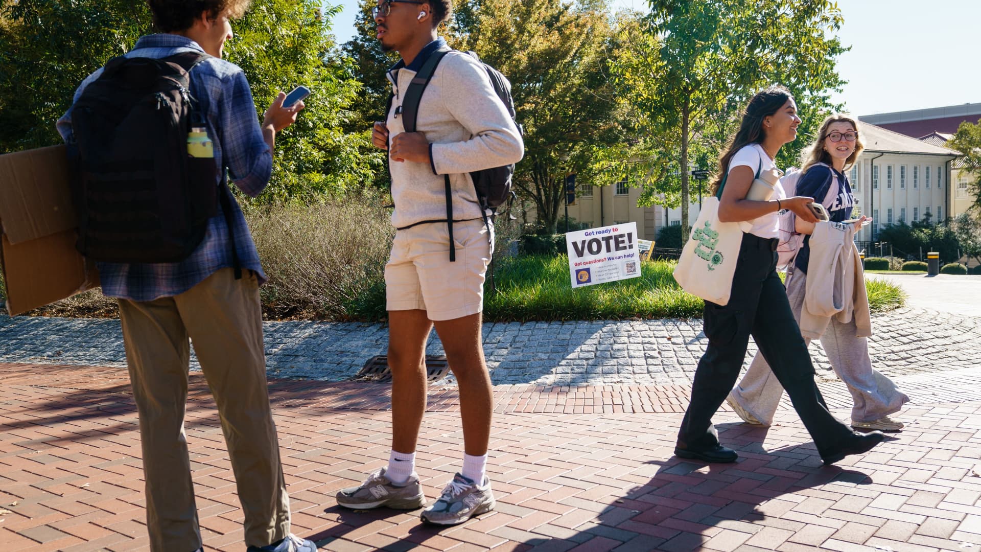 Young people are seen on the Emory University campus in Atlanta, Georgia on October 14, 2022.