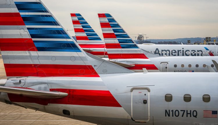 American Airlines passenger jets are lined up at the gates at Ronald Reagan Washington National Airport in Arlington, Virginia, on Feb. 10, 2024.