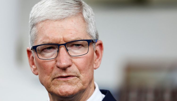 Apple CEO Tim Cook waves to journalists after his meeting with Indonesian President Joko Widodo at the Presidential Palace in Jakarta, Indonesia, April 17, 2024.