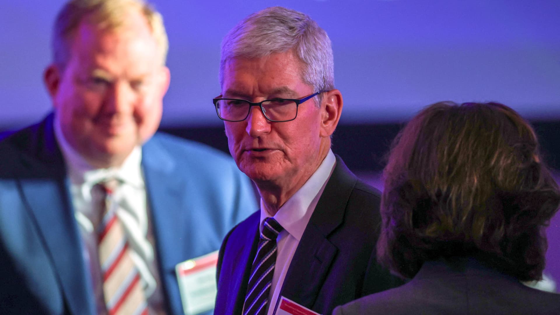 Apple CEO Tim Cook attends the “Senior Chinese Leader Event” held by the National Committee on US-China Relations and the US-China Business Council on the sidelines of the Asia-Pacific Economic Cooperation (APEC) Leaders’ Week in San Francisco, California, on November 15, 2023.