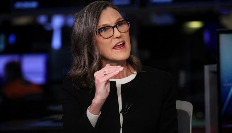 Cathie Wood, CEO of Ark Invest, speaks during an interview on CNBC on the floor of the New York Stock Exchange (NYSE) in New York City, February 27, 2023.