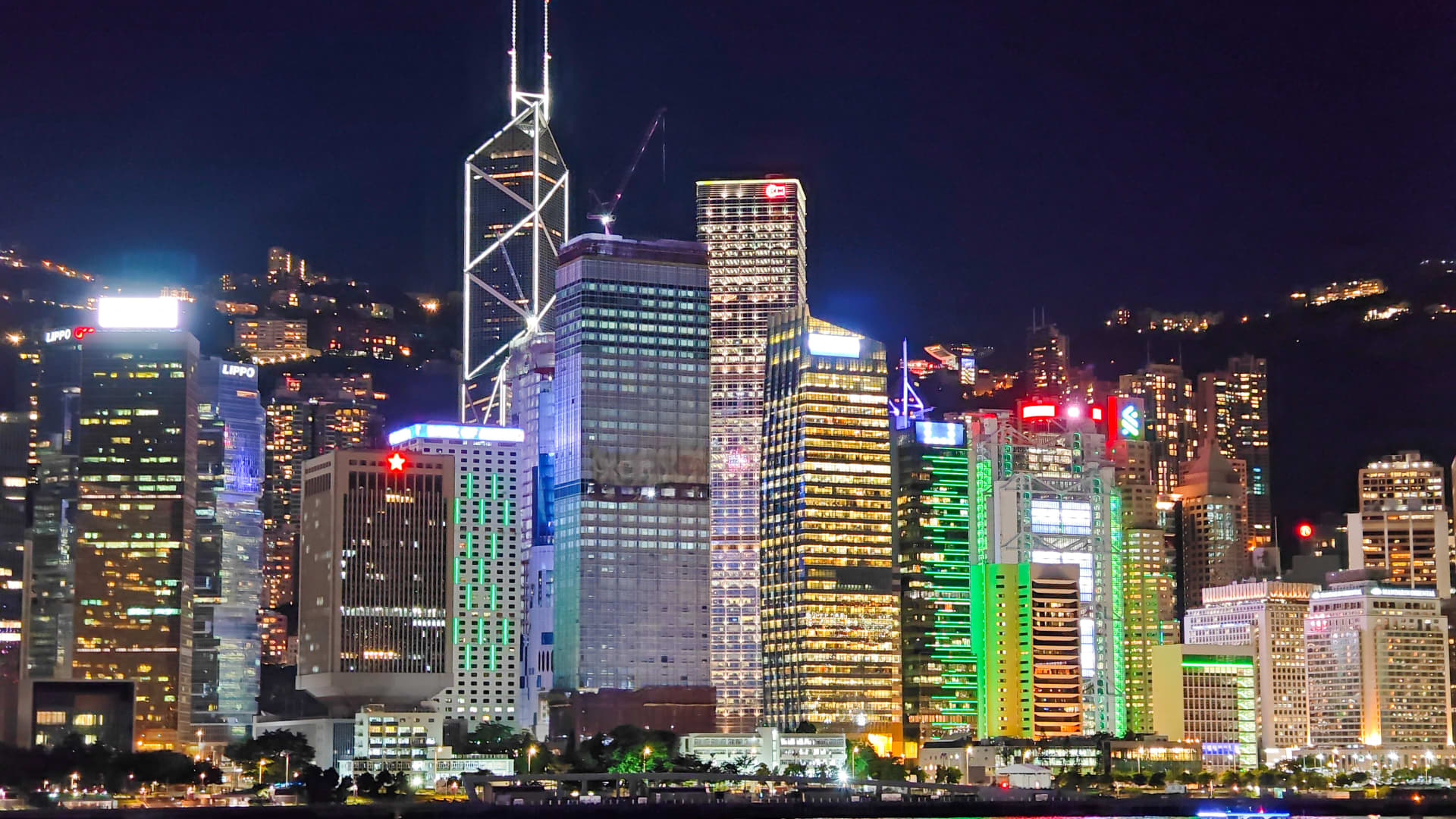 High-rise buildings are seen near Victoria Harbour in Hong Kong, China.