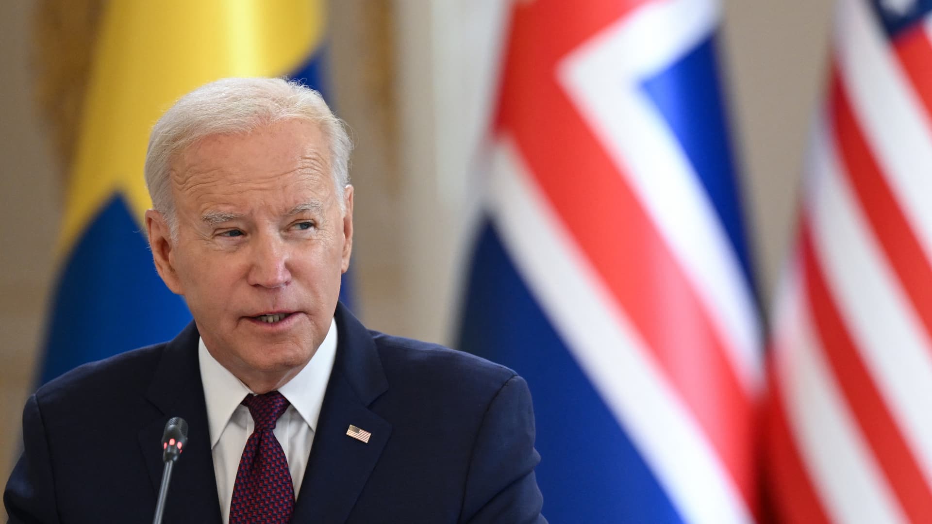US President Joe Biden participates in the US-Nordic Leaders’ Summit at the presidential palace in Helsinki, Finland, on July 13, 2023. US President Joe Biden travelled to Britain on July 9, 2023, to a NATO summit in Lithuania and will end the trip to Europe on July 13, 2023 in Finland.