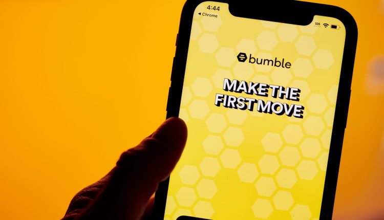The Bumble app is displayed on a smartphone in New York on Nov. 6, 2023.