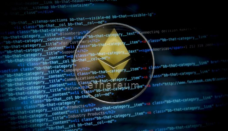 An Ether cryptocurrency coin in seen in this photo illustration.