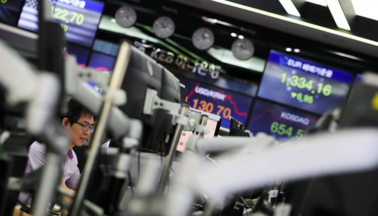 A foreign currency dealer looks at a monitor in a dealing room of KEB Hana Bank in Seoul, South Korea, on Monday, Sept. 4, 2017.