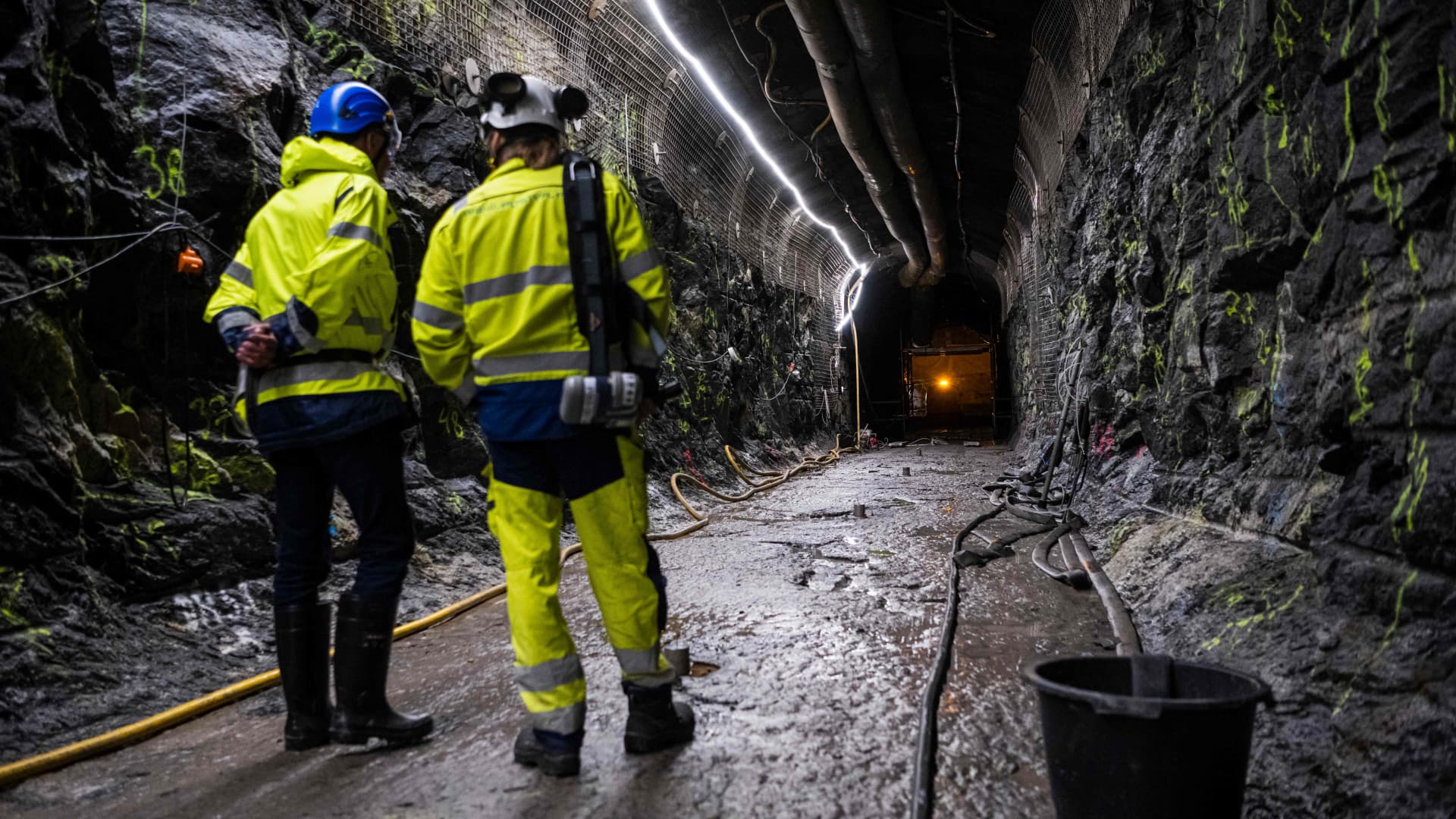 Workers inspect the Repository in ONKALO, a deep geological disposal underground facility, designed to safely store nuclear waste, on May 2, 2023, on the island of Eurajoki, western Finland.