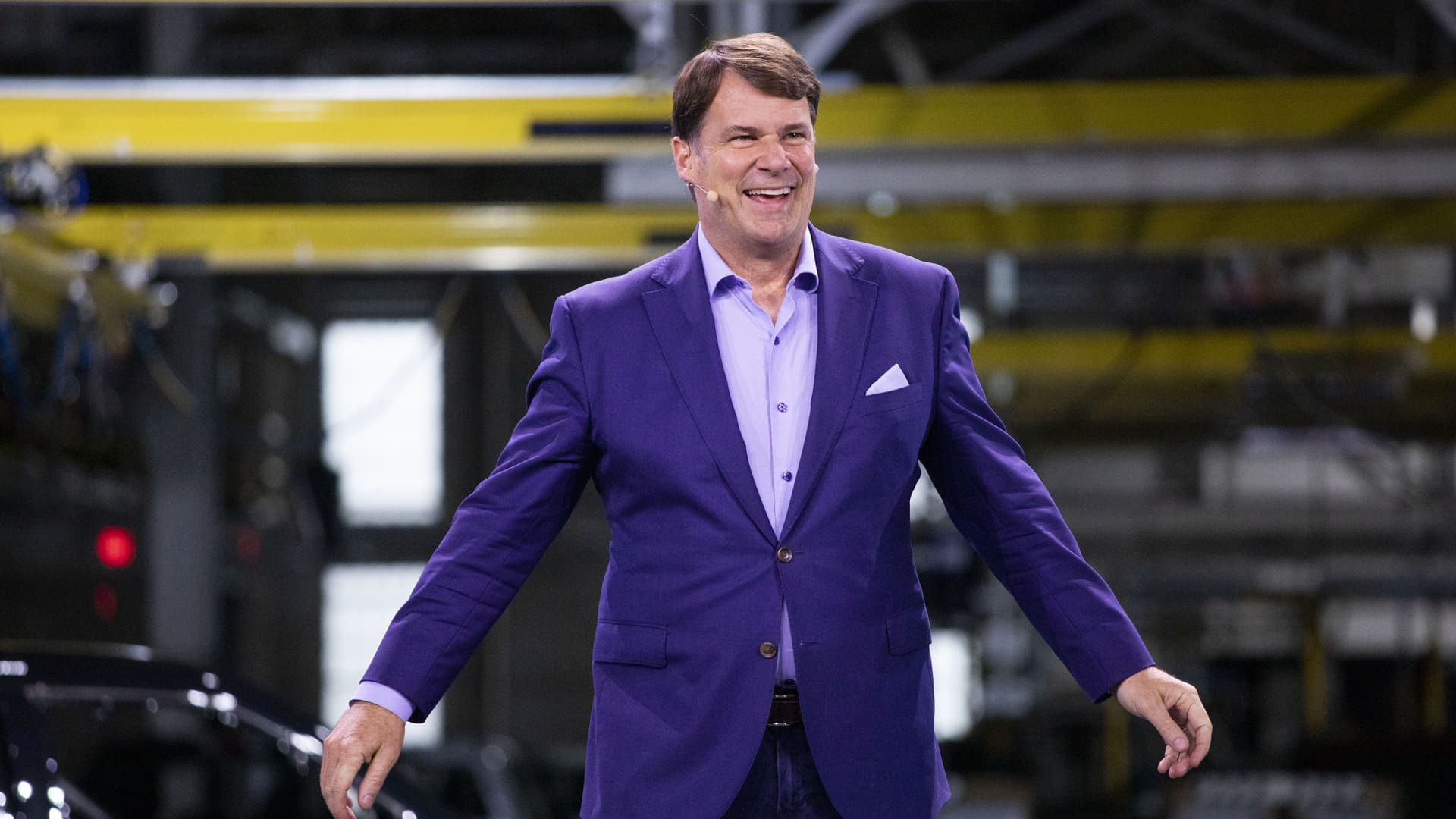 Ford CEO Jim Farley speaks at the launch of the all-new electric Ford F-150 Lightning pickup truck at the Ford Rouge Electric Vehicle Center on April 26, 2022 in Dearborn, Michigan. The F-150 Lightning is positioned to be the first full-size all-electric pickup truck to go on sale in the mainstream U.S. market.