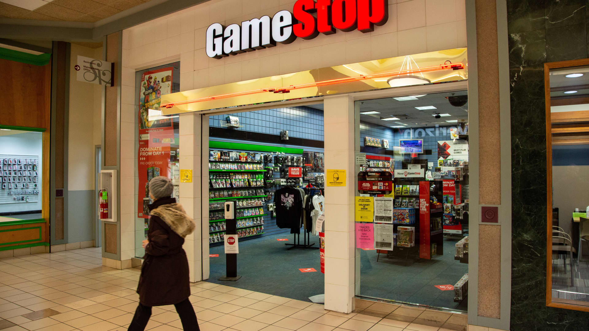 A woman walks past the GameStop store inside the Susquehanna Valley Mall in Selinsgrove, Pennsylvania, on Jan. 27, 2021.
