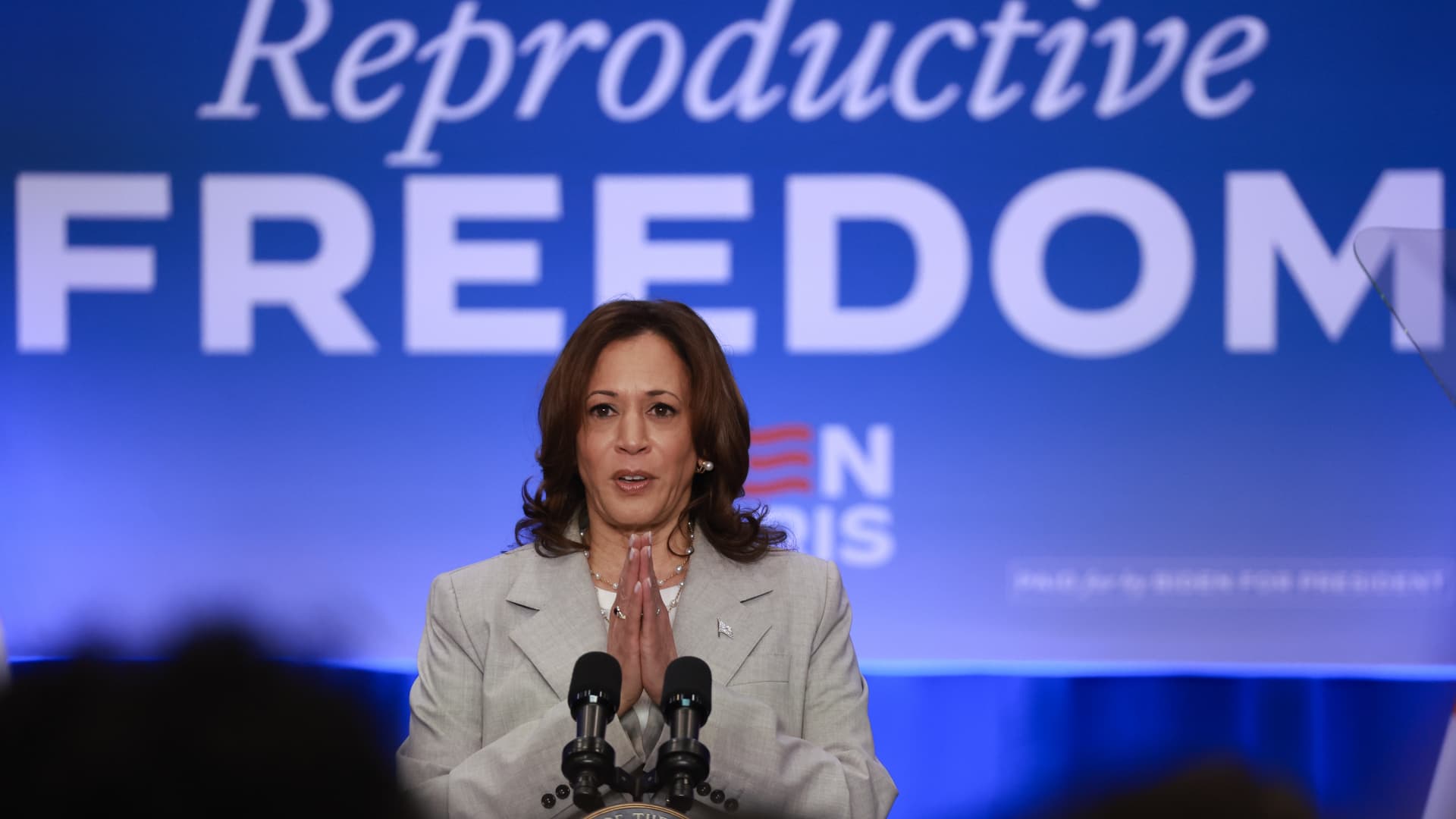 “There are now 20 states with Trump abortion bans,” Harris told “Call her Daddy” host Alex Cooper. “This is the same guy that said women should be punished for having abortions.”