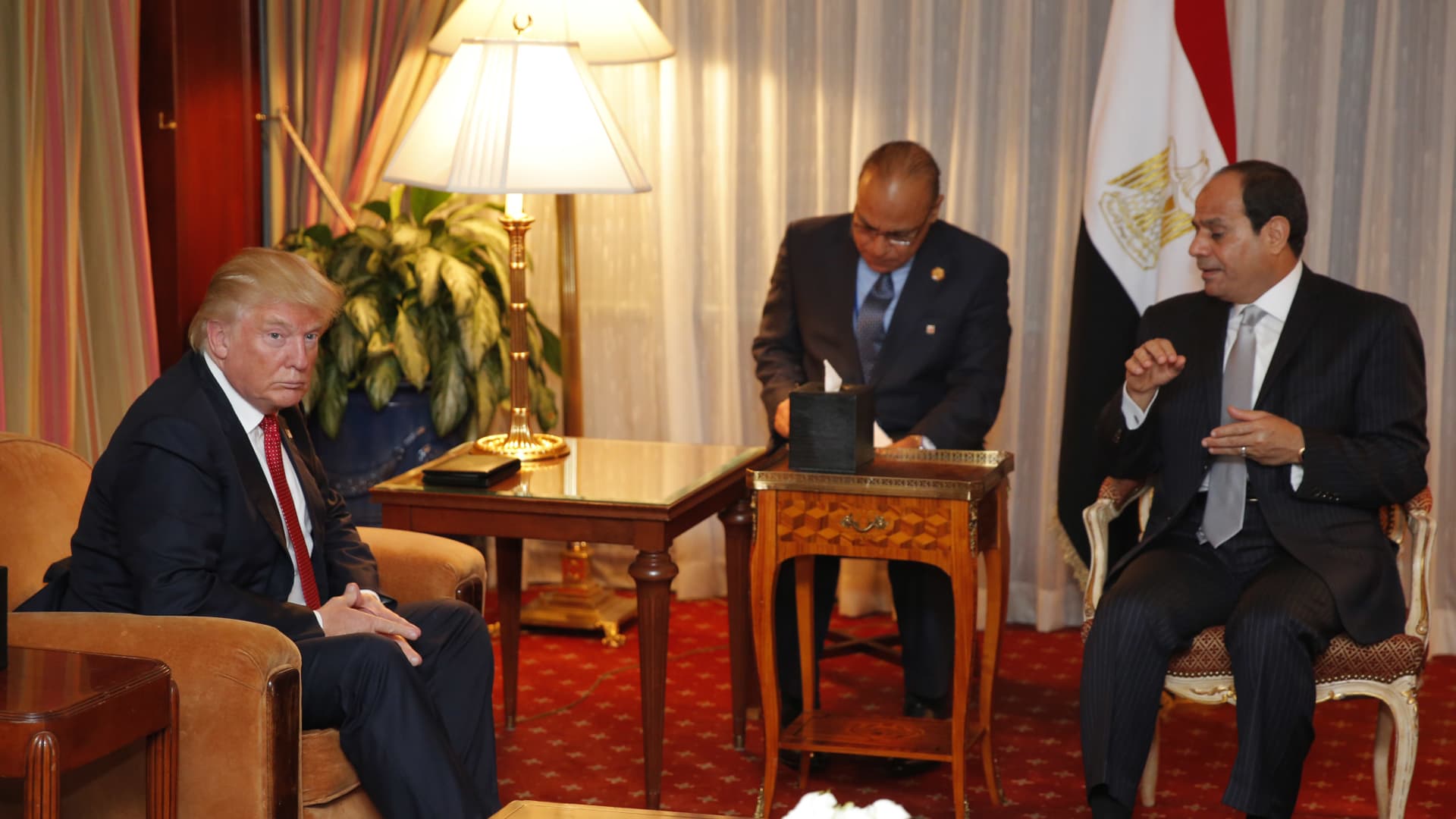 Republican presidential candidate Donald Trump (L) meets with Egyptian President Abdel Fattah el-Sisi at the Plaza Hotel on September 19, 2016 in New York.
