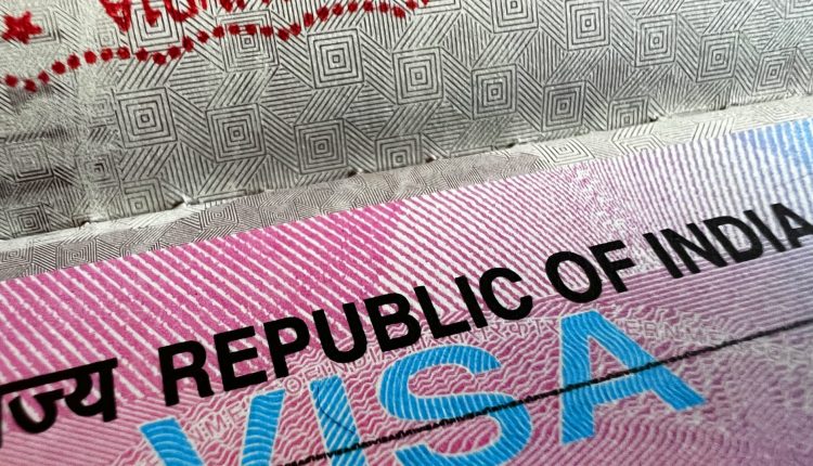 India tourist visa is seen in a passport in Brampton, Ontario, Canada, on March 17, 2022.