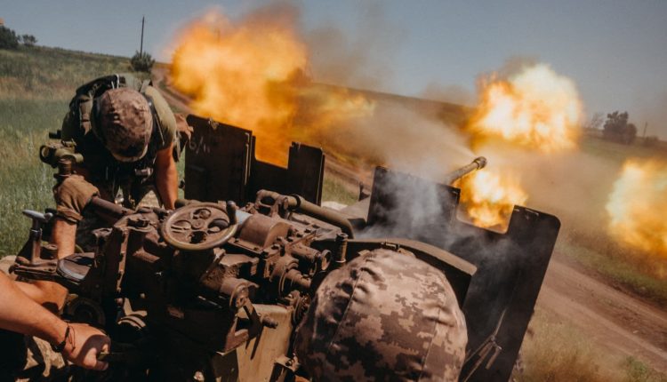 A Ukrainian soldier of the Aidar battalion, fires D-30 artillery in the direction of Bakhmut frontline as Russia-Ukraine war continues in the Donetsk region, Ukraine on August 14, 2023.