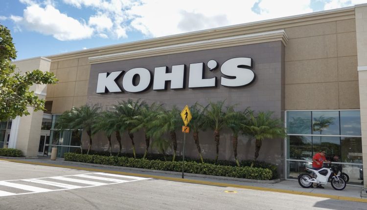 A Kohl’s department store sign hangs outside the building on March 12, 2024 in Miami, Florida. Shares of Kohl’s fell as it posted a drop in same-store sales in the fourth quarter.