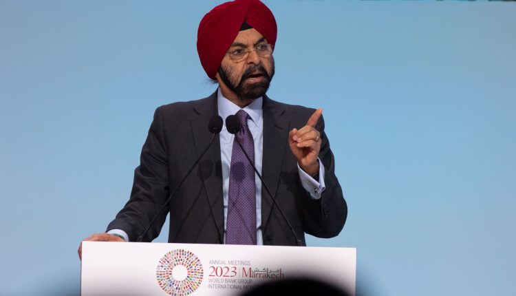 MARRAKESH, MOROCCO – OCTOBER 13: Ajay Banga, President of the World Bank Group, speaks during the International Monetary Fund (IMF) meeting in Marrakesh, Morocco on October 13, 2023. (Photo by Abu Adem Muhammed/Anadolu via Getty Images)