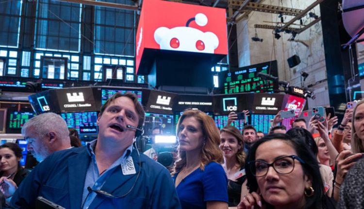 The trading floor of the New York Stock Exchange (NYSE) prepares for the social media platform Reddit’s initial public offering (IPO) on March 21, 2024 in New York City.