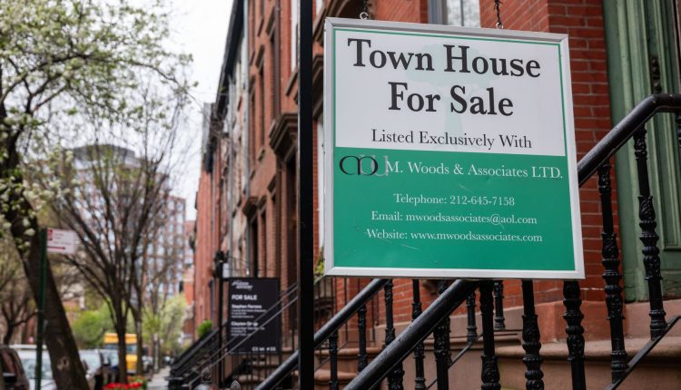 A sign advertising a home for sale is displayed outside of a Manhattan building on April 11, 2024 in New York City.
