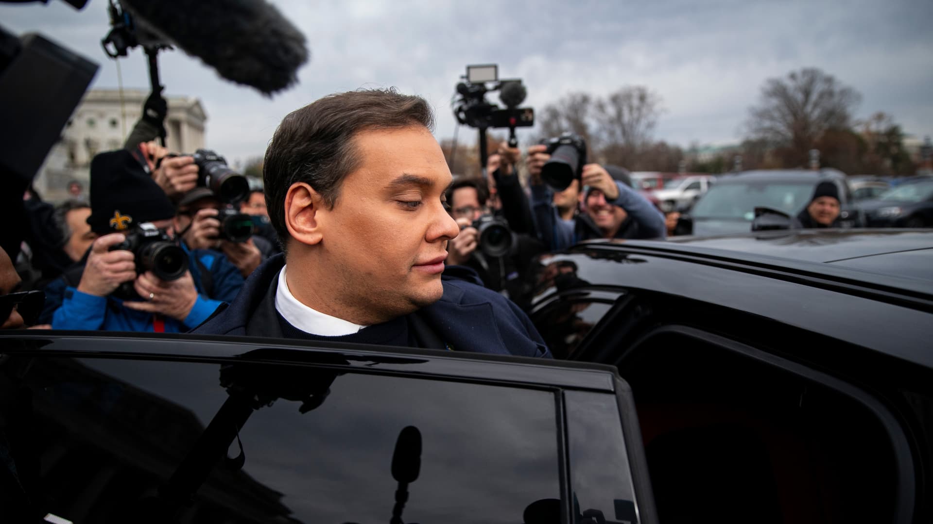 Representative George Santos, a Republican from New York, departs the US Capitol following being voted out of Congress in Washington, DC, US, on Friday, Dec. 1, 2023.