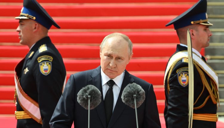 Russian President Vladimir Putin addresses troops from the defense ministry, National Guard, FSB security service and interior ministry in central Moscow on June 27, 2023.