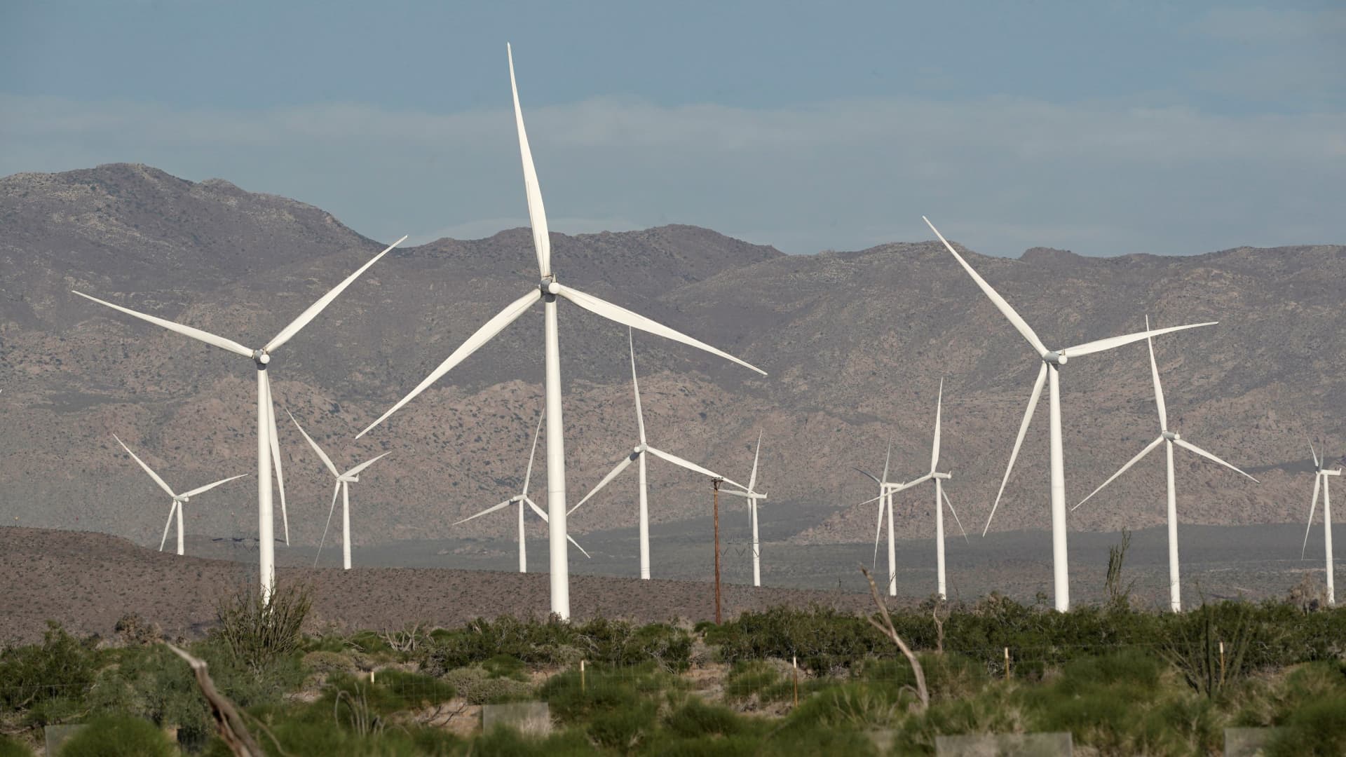 Power-generating Siemens 2.37 megawatt (MW) wind turbines are seen at the Ocotillo Wind Energy Facility California, May 29, 2020.