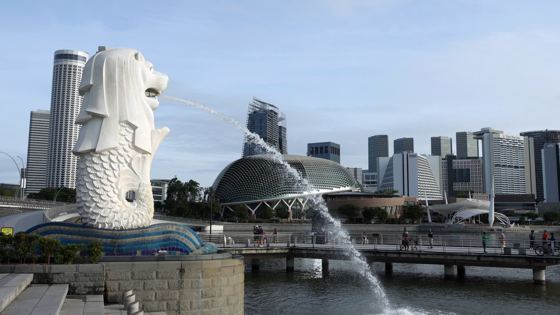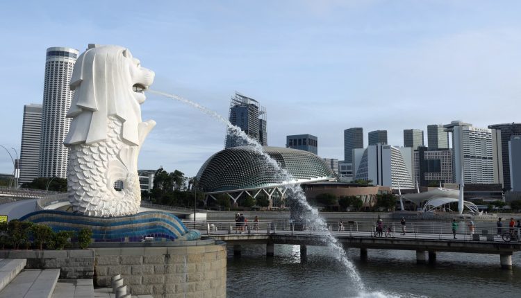 The Merlion statue in Singapore, on Tuesday, Jan. 3, 2023. Photographer: Lionel Ng/Bloomberg via Getty Images