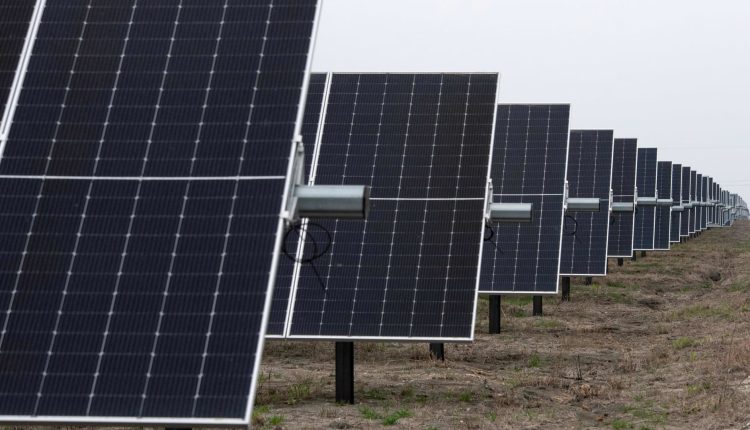 Solar panels at the ENGIE Sun Valley Solar project in Hill County, Texas, on March 1, 2023.