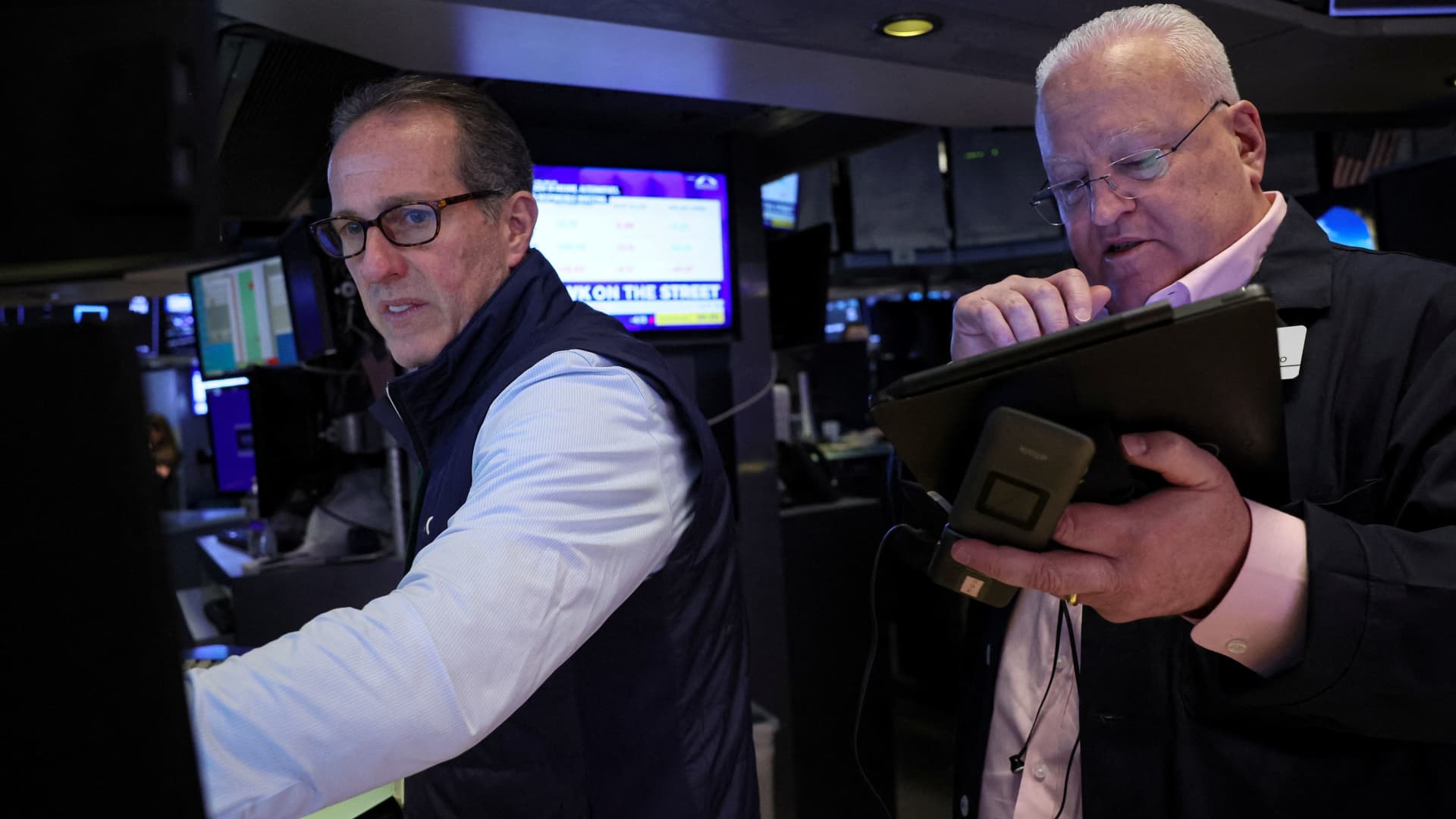 Traders work on the floor at the New York Stock Exchange (NYSE) in New York City, U.S., March 13, 2024.