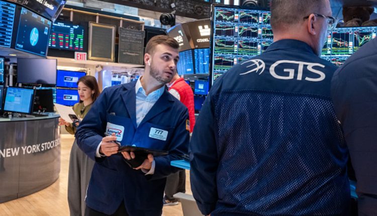 Traders work on the floor of the New York Stock Exchange (NYSE) on March 20, 2024 in New York City.