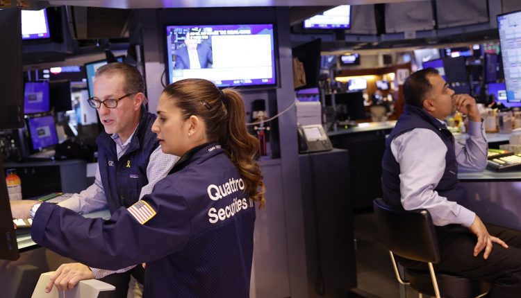 Traders work on the floor of the New York Stock exchange during morning trading on May 17, 2024.