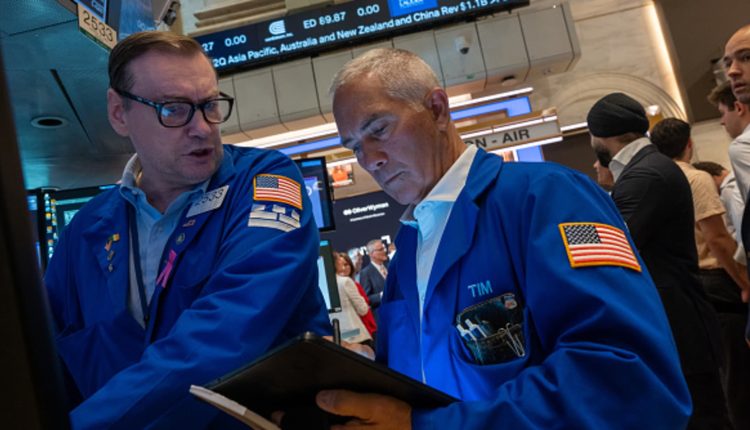 Traders work on the floor of the New York Stock Exchange on July 11, 2024.