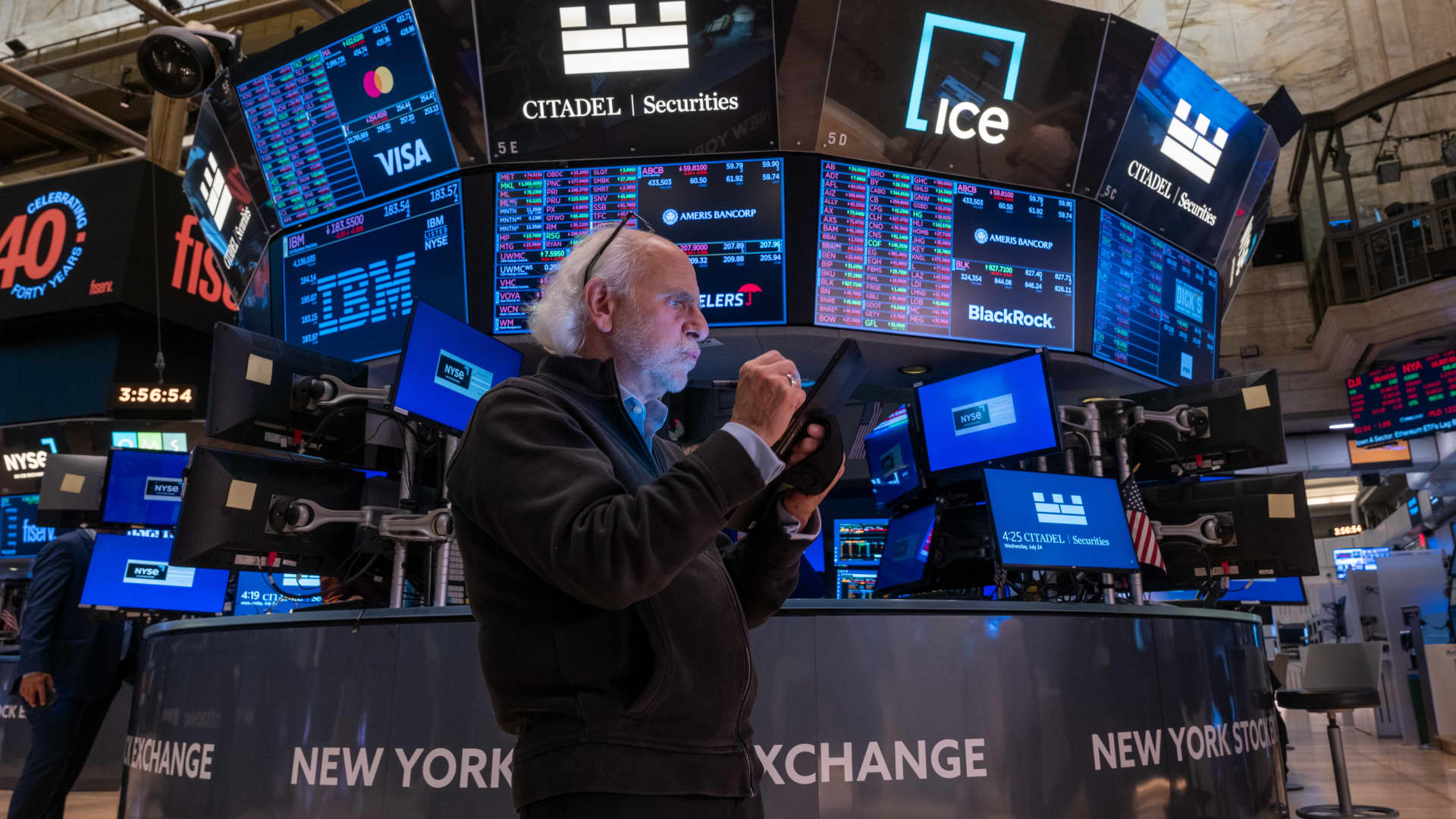 Traders work on the floor of the New York Stock Exchange (NYSE) on July 24, 2024 in New York City.