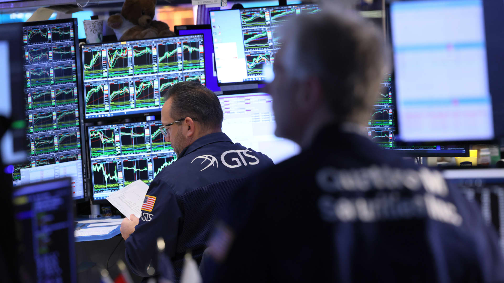 Traders work on the floor of the New York Stock Exchange during morning trading on January 31, 2024 in New York City.