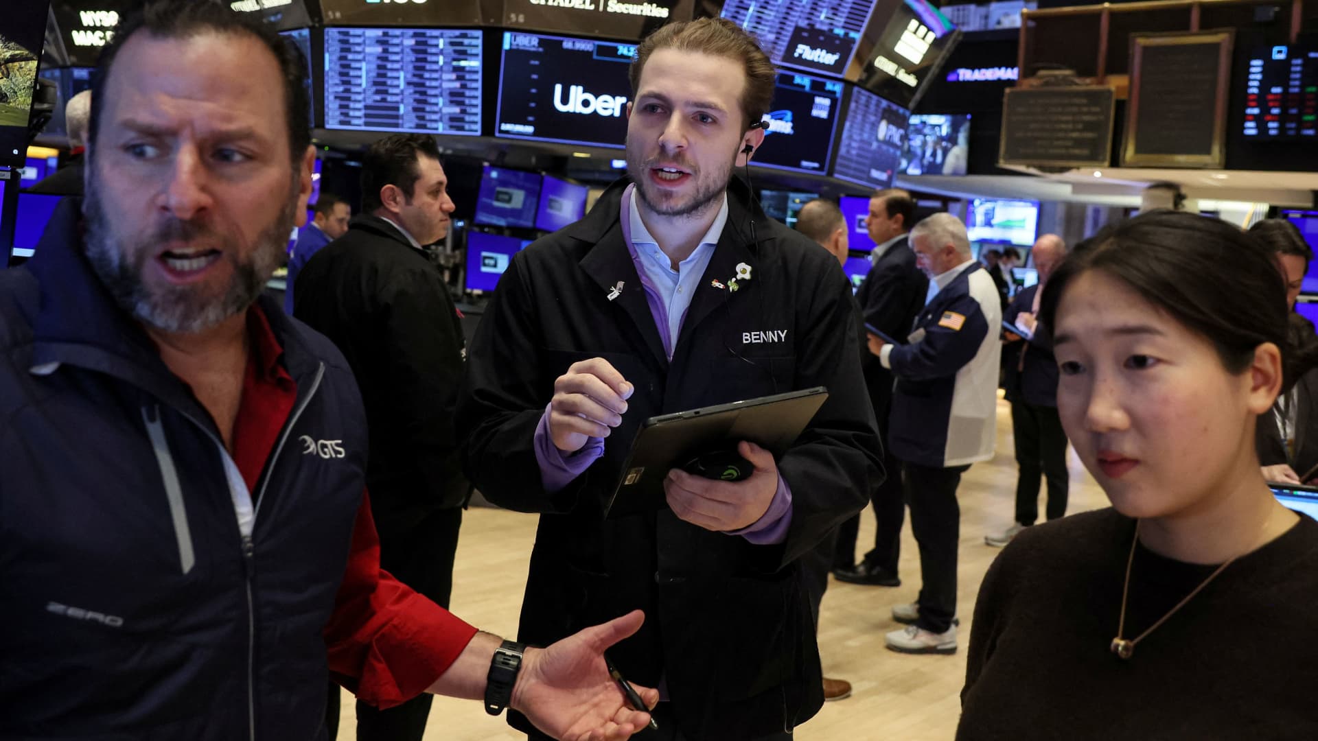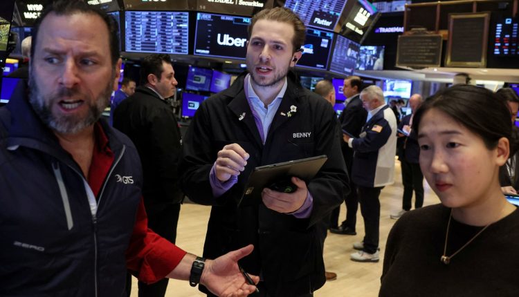 Traders work on the floor at the New York Stock Exchange (NYSE) in New York City, U.S., February 14, 2024.