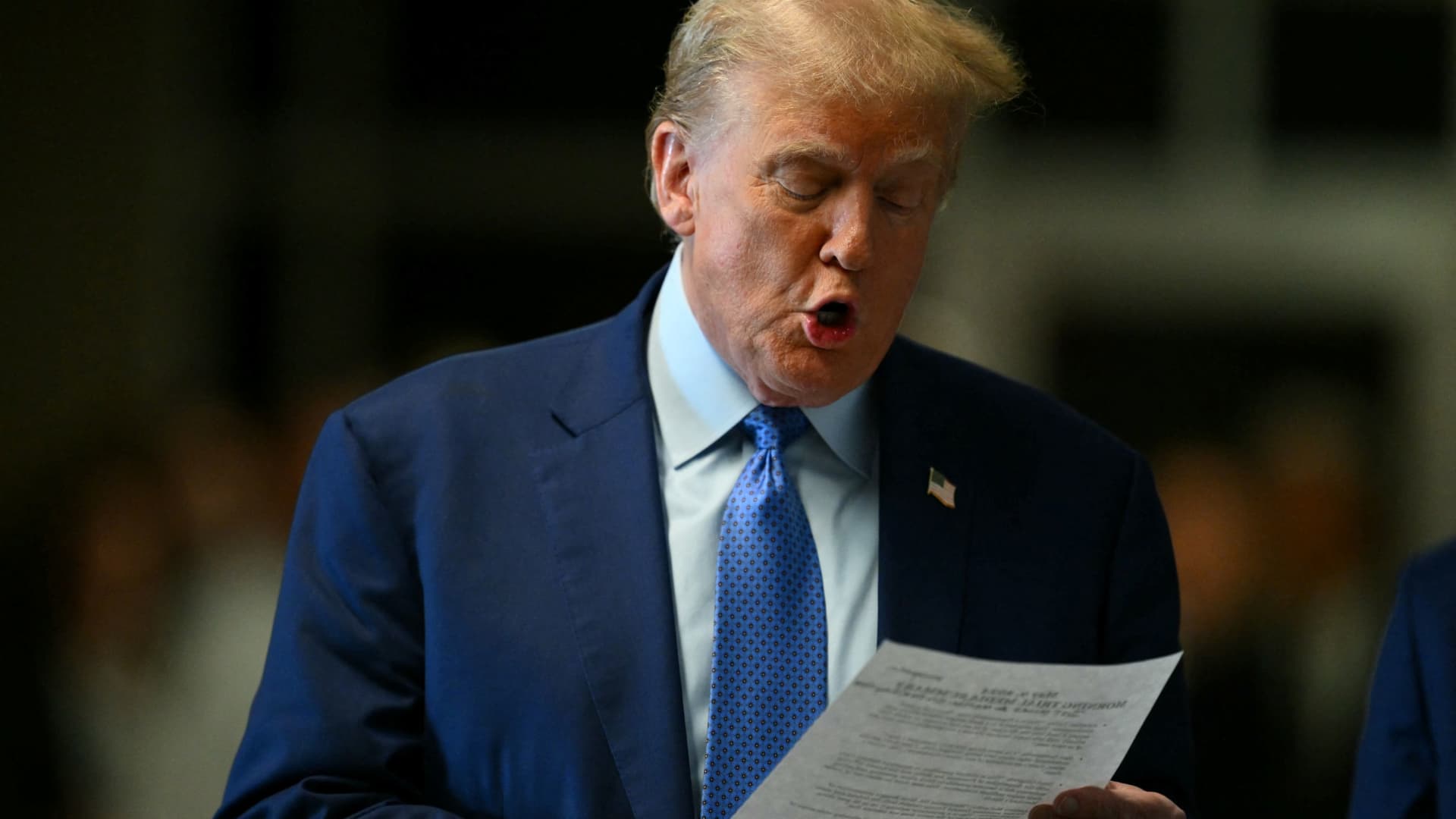 Former US President Donald Trump speaks to the press before his trial for allegedly covering up hush money payments linked to extramarital affairs, at Manhattan Criminal Court in New York City, on May 9, 2024.