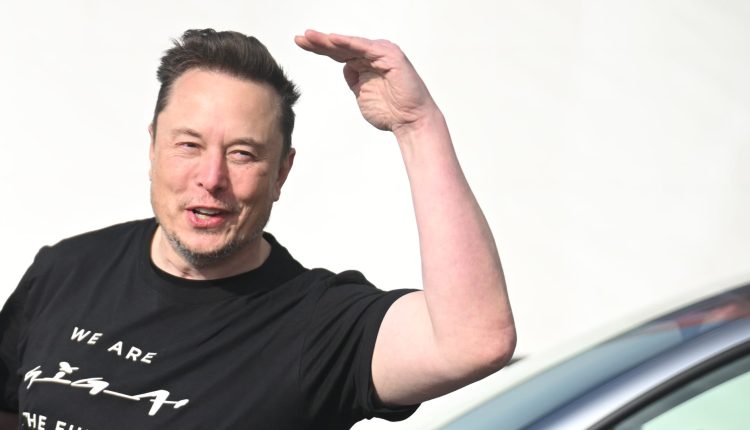 Tesla CEO Elon Musk is pictured during a visit at the company’s electric car plant in Gruenheide near Berlin, eastern Germany, on March 13, 2024, as employees resumed work after production had to be halted due to a suspected arson attack that caused a power outage.