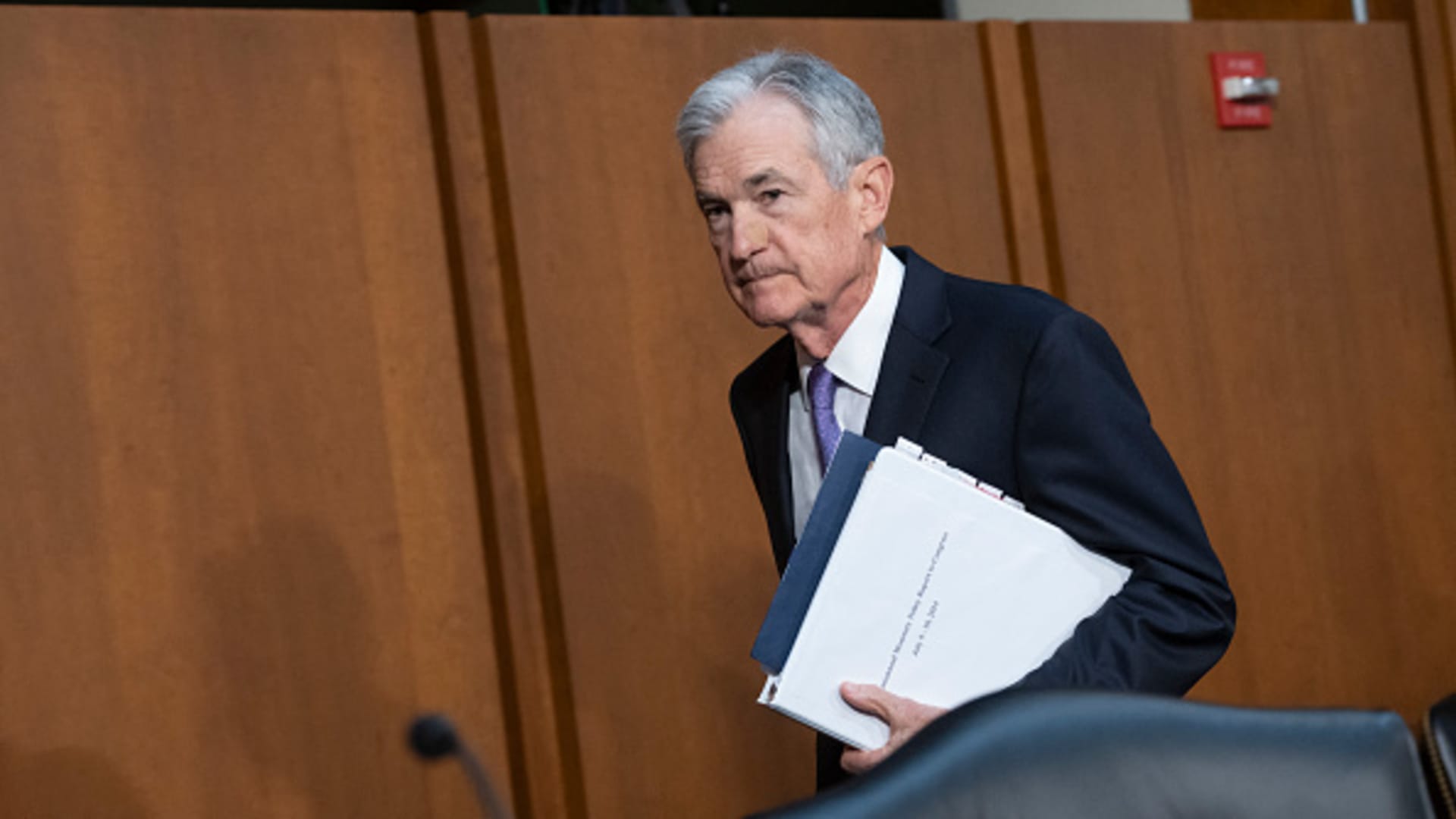 US Federal Reserve Chair Jerome Powell arrives to testify before the Senate Banking, Housing, and Urban Affairs Hearings to examine the Semiannual Monetary Policy Report to Congress at Capitol Hill in Washington, DC, on July 9, 2024.