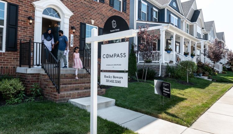 Prospective home buyers leave a property for sale during an Open House in a neighborhood in Clarksburg, Maryland on September 3, 2023.