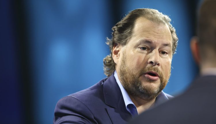 Marc Benioff, co-founder and chief executive officer of Salesforce.com Inc., speaks during the WSJDLive Global Technology Conference in Laguna Beach, California, U.S., on Wednesday, Oct. 26, 2016. The conference brings together an unmatched group of top CEOs, founders, pioneers, investors and luminaries to explore tech opportunities emerging around the world.