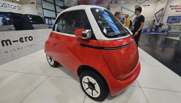 At the IAA, Swiss firm Micro showed off its Microlino, a small battery-powered vehicle.