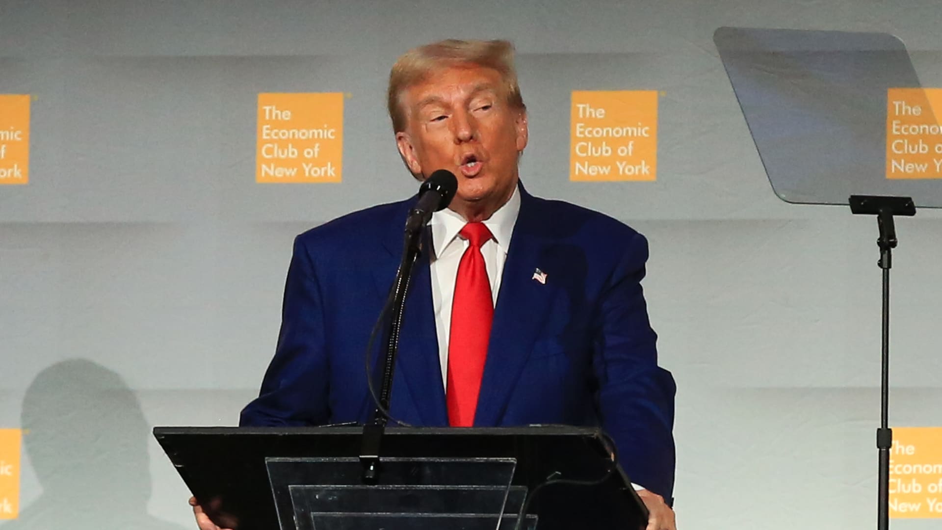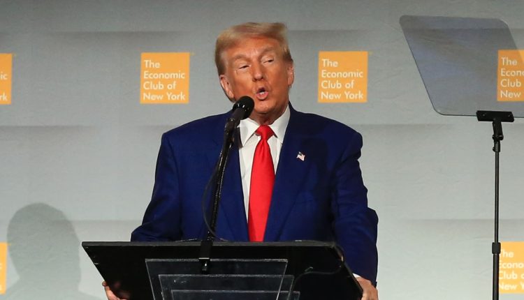Former President Donald Trump, the GOP presidential nominee, speaks at the New York Economic Club in New York, Sept. 5, 2024.