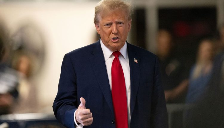 Former US President Donald Trump speaks to members of the media at Manhattan criminal court in New York, US, on Thursday, April 25, 2024.