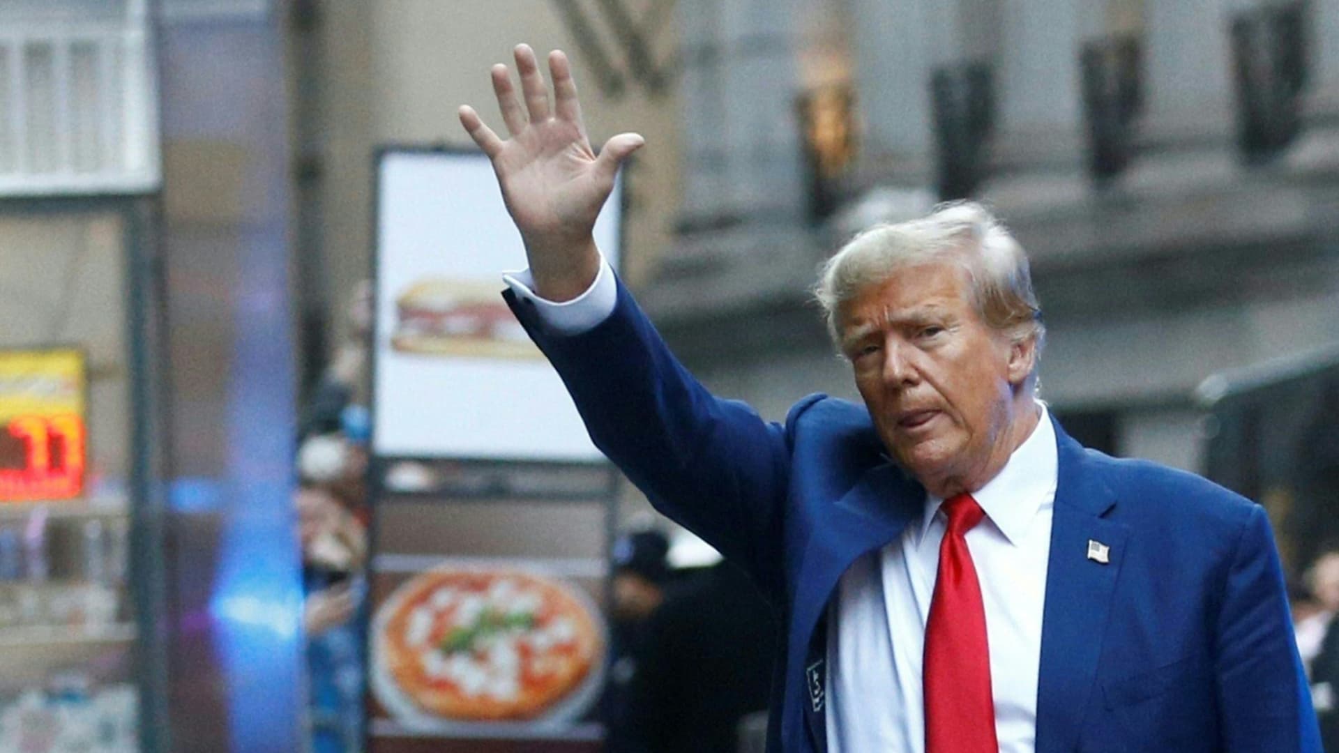 Former U.S. President Donald Trump arrives to speak to the press after attending the civil fraud trial against the Trump Organization in New York State Supreme Court, in New York City on Jan. 11, 2024.