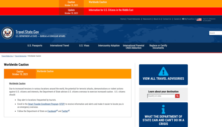 WASHINGTON — The U.S. State Department issued a worldwide caution alert on Thursday due to soaring tensions in the Middle East and elsewhere triggered by the ongoing Israel-Hamas war.