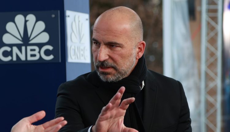 Dara Khosrowshahi, CEO of Uber, speaking on CNBC’s Squawk Box at the World Economic Forum Annual Meeting in Davos, Switzerland on Jan. 17th, 2024.