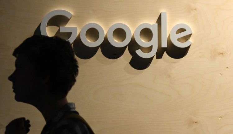 A woman passes the Google logo during the digital society festival re:publica at the Arena Berlin in Berlin, Germany, on June 9, 2022.