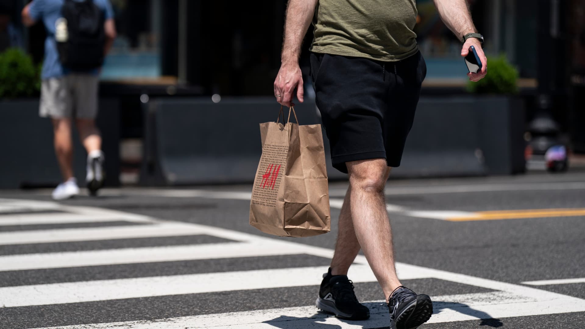 A shopper carries an H&M bag in the Georgetown neighborhood of Washington, DC, US, on Thursday, May 30, 2024.